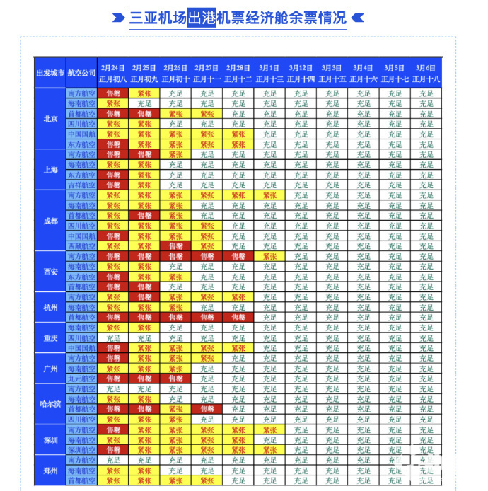 目前,部分海南岛离岛返程航线经济舱售罄,公务舱票价逼近万元。民航部门与航司已持续增班缓解返程客流压力,预计3月起离岛票价将逐步回落。