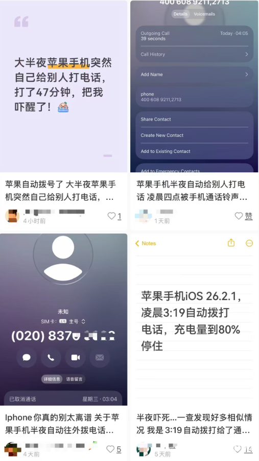 2026年2月25日消息,近日,iPhone手机在锁屏充电状态下自动拨打陌生人电话的现象,尤其是凌晨时段拨号行为伴随免提接通,让独居者直呼“吓破胆”。