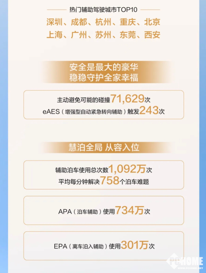 报告显示,在安全保障方面,问界智能辅助系统在此期间主动避免潜在碰撞71629次,触发eAES增强型自动紧急转向辅助243次;用户用车体验方面,辅助泊车共使用1092万次,第三空间使用总时长1882万小时,零重力座椅、语音助手等功能被高频使用;品牌同步提供春节出行保障服务17935次,主动服务14616次,全周期守护用户出行。