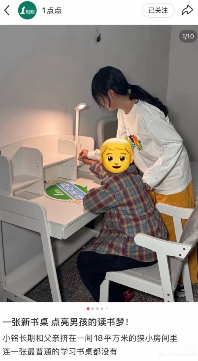 据了解,在一点点官方发布的公益宣称中,称资助一名与家人同住的男孩,为其提供书桌、生活用品,并赠送全套《阿衰》漫画,配文案“点亮读书梦”。内容发布后迅速引发质疑,不少网友认为,以漫画作为助学物资与“读书梦”主题不符;同时指出该男孩佩戴的电话手表价值约2000元,不符合帮扶“贫困”标准。