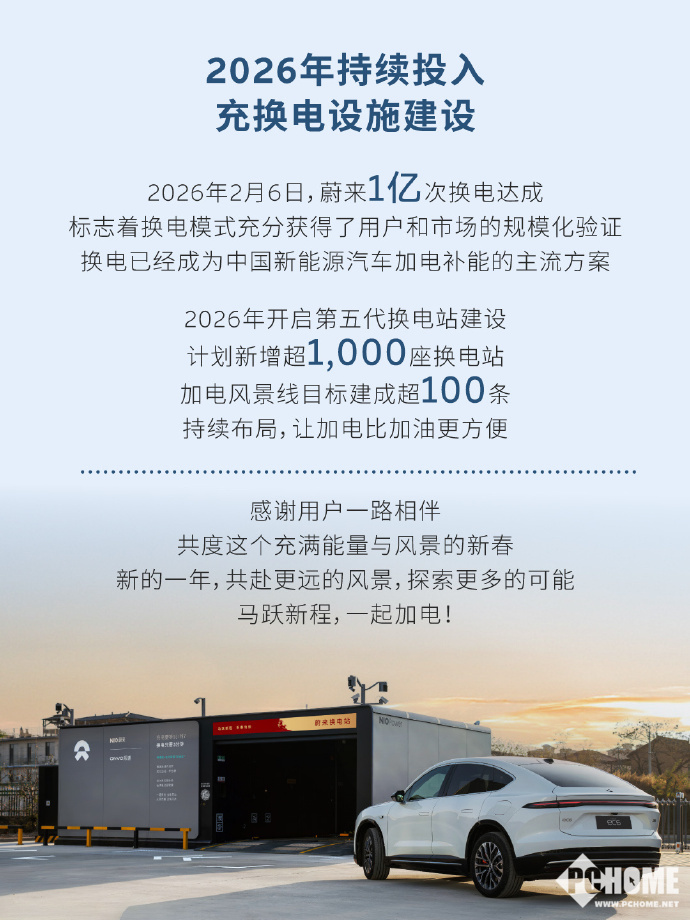 蔚来方面表示,未来将继续扩大全国充换电网络布局,持续优化补能效率,为用户长途出行与日常用车提供更稳定、更便捷的能源服务。