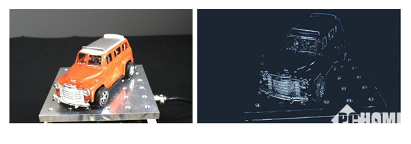 成像示例1:振动检测(左:基于帧的图像,右:事件监测的传感)