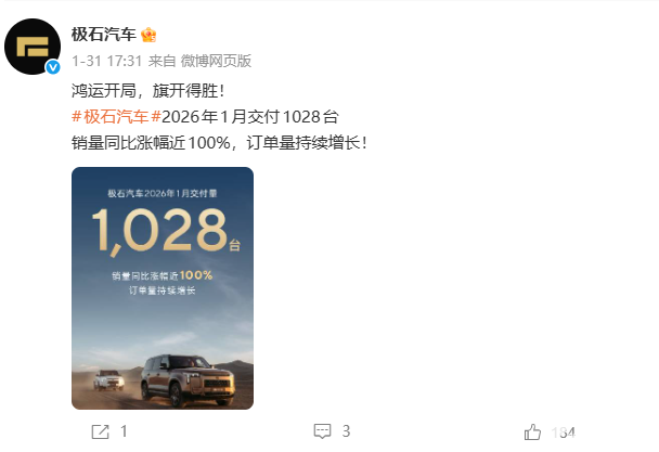 极石汽车联合创始人兼首席执行官闫枫此前提出,2026年全球销量目标3万辆,并计划2030年成为全球户外爱好者的首选新能源品牌”。随着新品落地、国内与海外市场持续拓展,品牌能否实现这一愿景,有待市场检验。