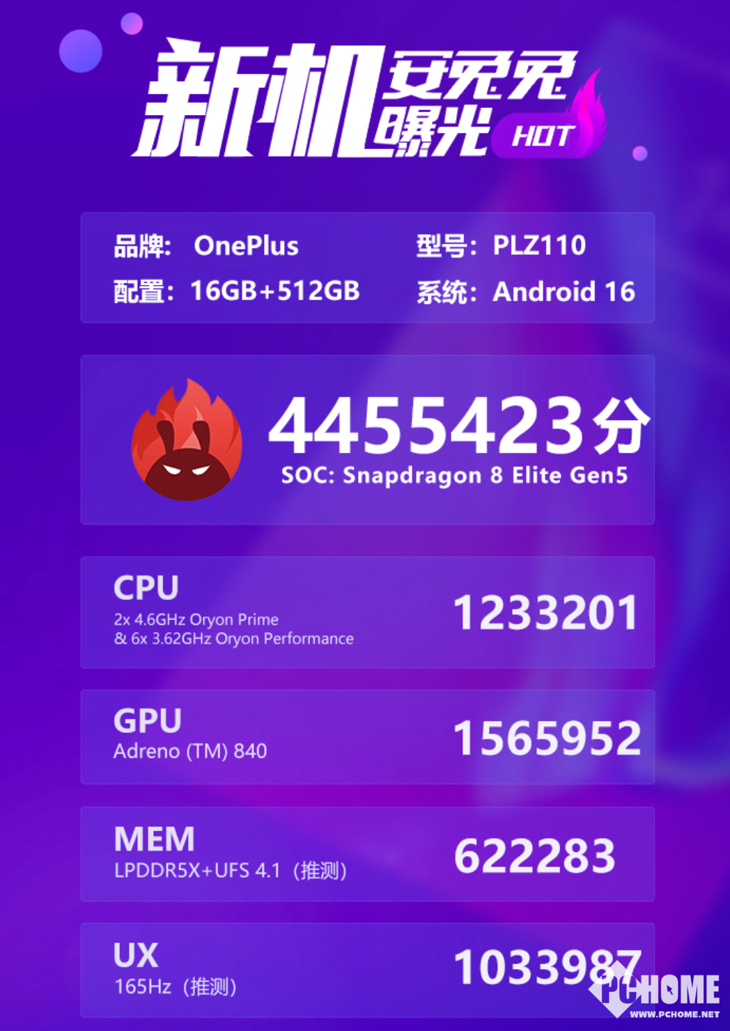 PChome 3月3日消息,安兔兔官微发文称,一加一型号为PLZ110的新机现身跑分数据库,很有可能是即将发布的一加15T。