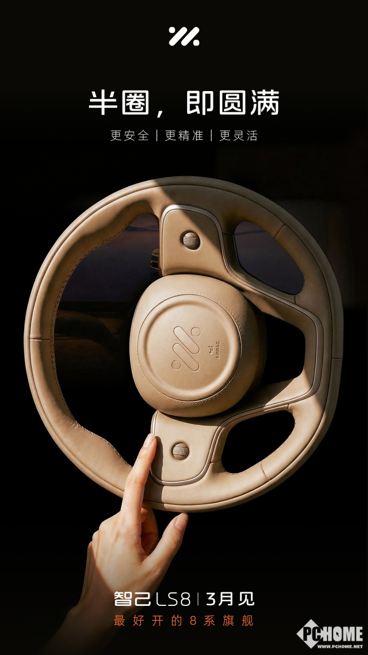 PChome 3月4日消息,智己LS8已通过官方预告确认搭载线控转向技术,并将于2026年3月正式发布。