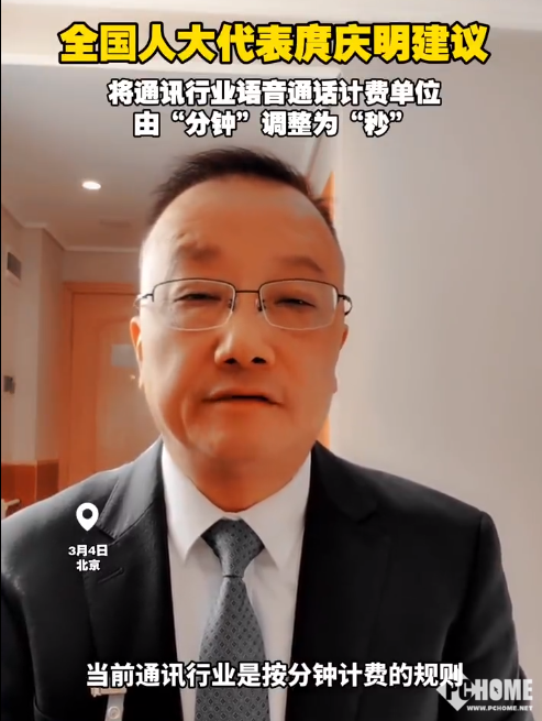 PChome 3月4日消息,2026年全国两会期间,全国人大代表、雅安市教育考试院院长庹庆明提出《关于将通讯行业语音通话计费单位由“分钟”调整为“秒”的建议》。
