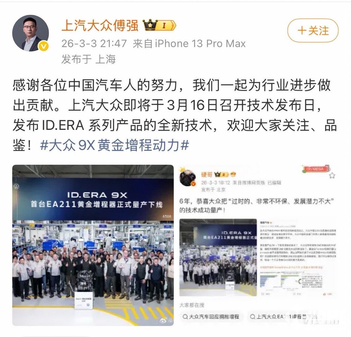 PChome获悉,面对该言论上汽大众销售副总傅强3小时内以“感谢中国汽车人的努力,一起为行业进步做贡献”的包容姿态回应,同时宣布技术发布计划。该回应被部分舆论解读为“格局打开”,弱化对抗性。
