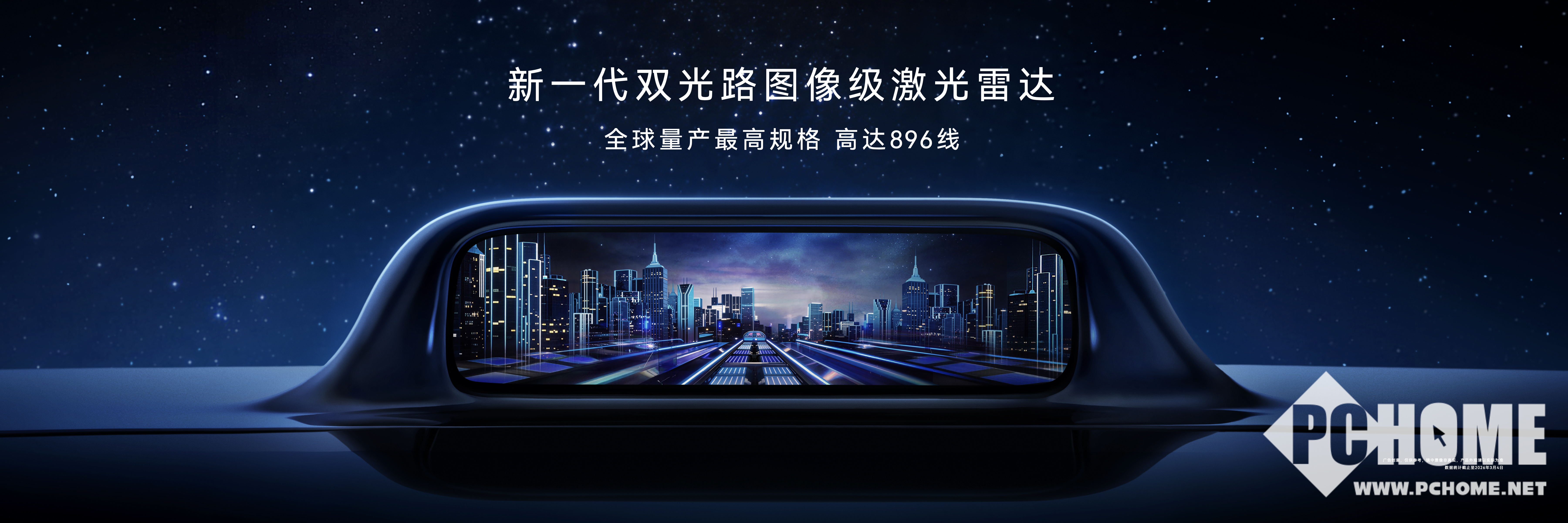PChome 3月4日消息,华为乾崑在2026年3月4日的鸿蒙智行技术焕新发布会上,发布全球量产最高线束的896线激光雷达,实现超高清、超精准、超远距的感知能力,业界首创双光路架构,广角长焦一体成像,分辨率提升4倍。
