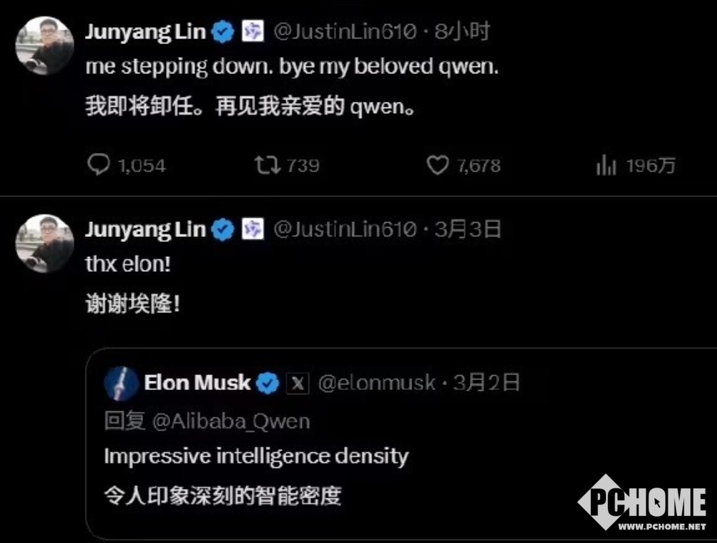 PChome 3月5日消息,阿里千问技术负责人林俊旸已于2026年3月4日凌晨在社交平台宣布离职,称“me stepping down. bye my beloved qwen”。