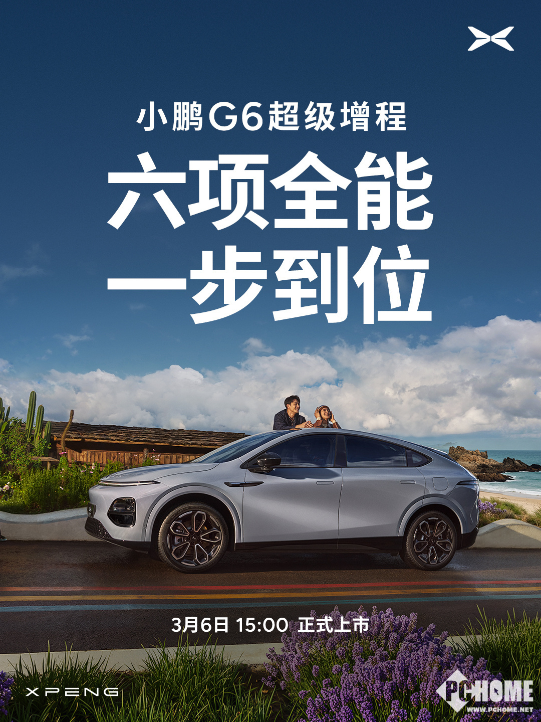 据了解,小鹏G6超级增程是小鹏汽车将于3月6日推出的增程式智能轿跑SUV。它搭载1.5T增程器与电机,CLTC纯电续航430km、综合续航1704km。依托同级唯一800V+5C高压平台,12分钟可充电314km。智能方面,配备2250 TOPS算力平台与第二代VLA系统。还搭载太极AI底盘与DCC动态悬架,兼顾操控与舒适。