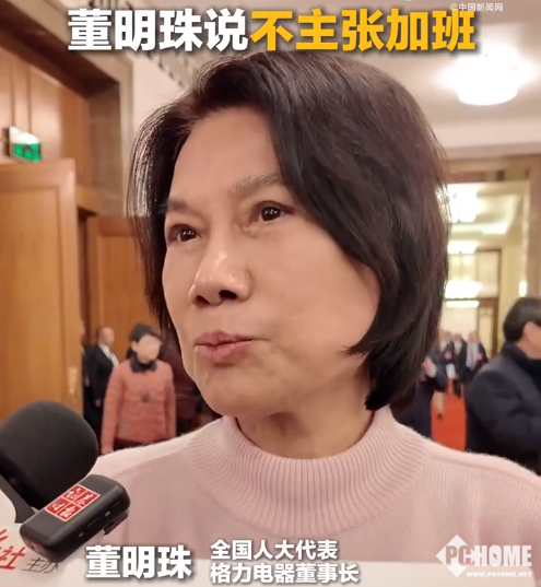 PChome 3月5日消息,2026全国两会期间,格力电器董事长董明珠在接受采访时就职场加班话题作出表态,明确表示不主张加班,并指出随着产业智能化发展,许多简单、粗重的劳动已被机器替代,更无需以加班方式完成任务。