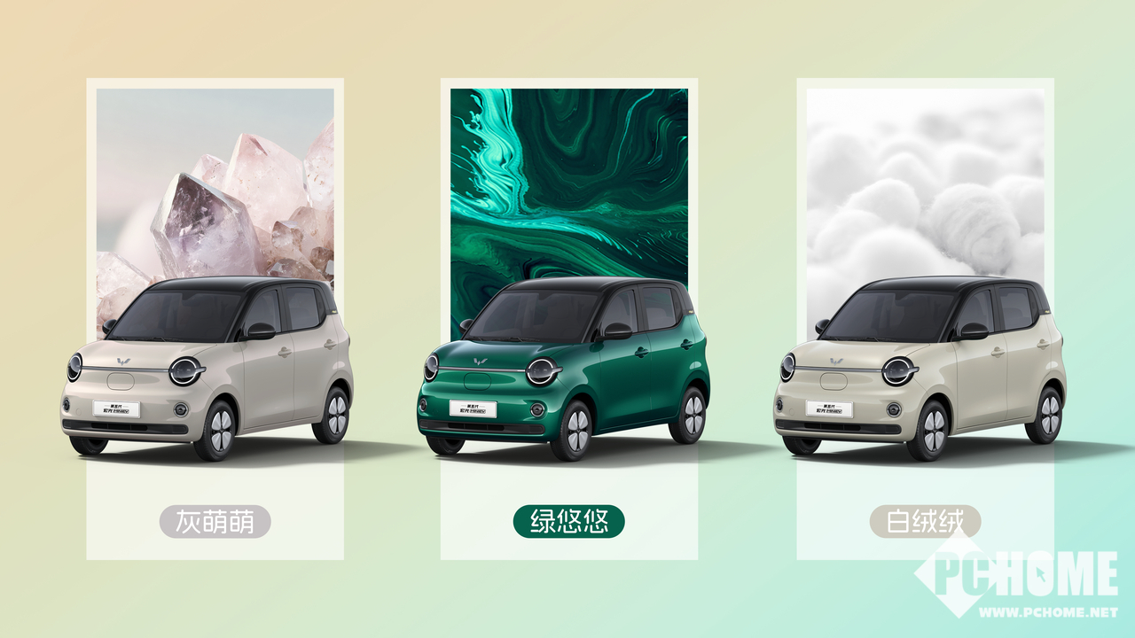 PChome 3月6日消息,第五代五菱宏光MINIEV正式开启预订,主打“甜趣方糖”外观设计,采用绿悠悠、白绒绒、灰萌萌三款幻彩珠光复古车漆,造型萌趣吸睛。