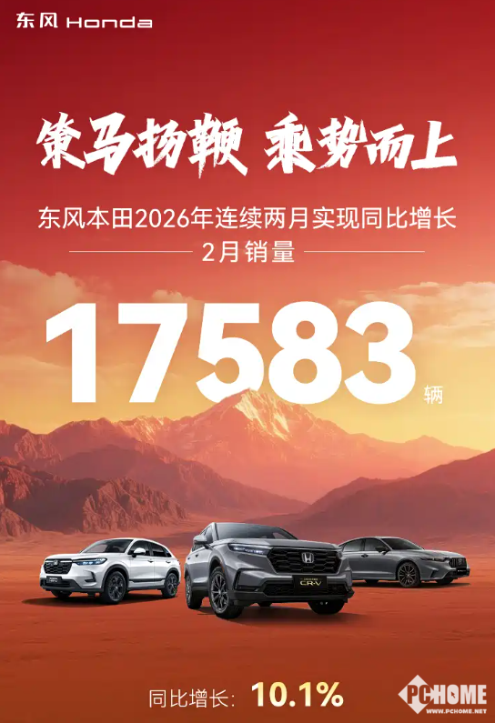 PChome获悉,本田在华两大合资公司的市场表现呈现明显分化。其中,东风本田2月销量17583辆,同比增长10.1%,已连续两个月实现同比正增长;主力车型CR-V当月销量突破1万辆,同比增长13.2%,英仕派、HR-V等车型也实现显著增长。截至去年年底,广汽本田累计销量35.19万辆,同比下降25.22%,1月销量仅4558辆,同比暴跌高达69.86%。广汽本田方面虽暂未披露2月具体数据,但结合整体销量推测,其当月表现相对承压,成为拖累本田中国整体销量的主要因素。
