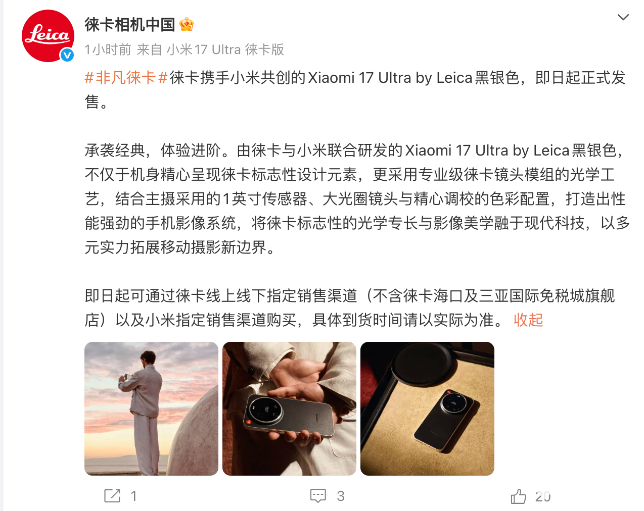 PChome 3月10日,小米17 Ultra徕卡版全新黑银配色正式发售,售价7999元起。值得注意的是,小米17 Ultra徕卡版全新黑银配色不仅在小米官方渠道发售,还可以在徕卡线上线下指定销售渠道购买。