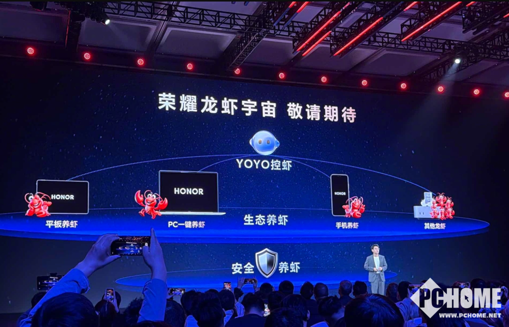 PChome 3月11日消息,荣耀在昨日新品发布会上正式推出“龙虾宇宙”生态计划,本质是围绕OpenClaw开源AI智能体框架打造的全场景管理平台,通过多设备协同、YOYO语音交互和安全防护三大能力,让用户实现跨终端“养虾”。
