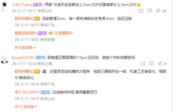 该博主透露,iPhone 18 Pro系列的灵动岛屏幕形态与横向大矩阵ID设计大体维持前代风格,背部三摄排列也基本一致,仅机身工艺与部分ID细节略有调整。此前网传iPhone 18 Pro系列将运用“缩小灵动岛”方案,计划缩减屏下Face ID的开孔区域,但目前看来该方案未能落地。