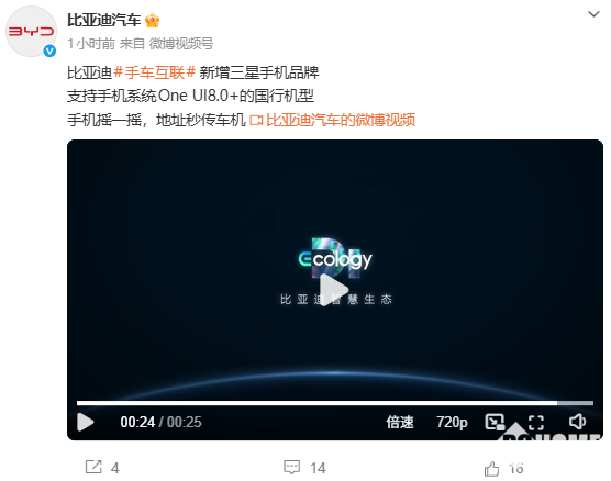 截至目前,比亚迪手车互联已覆盖华为、小米、OPPO、vivo、荣耀、三星等主流品牌,成为国内兼容机型最广的车机系统之一。相关功能将通过OTA分批推送,符合条件的车主与手机用户可陆续升级体验。