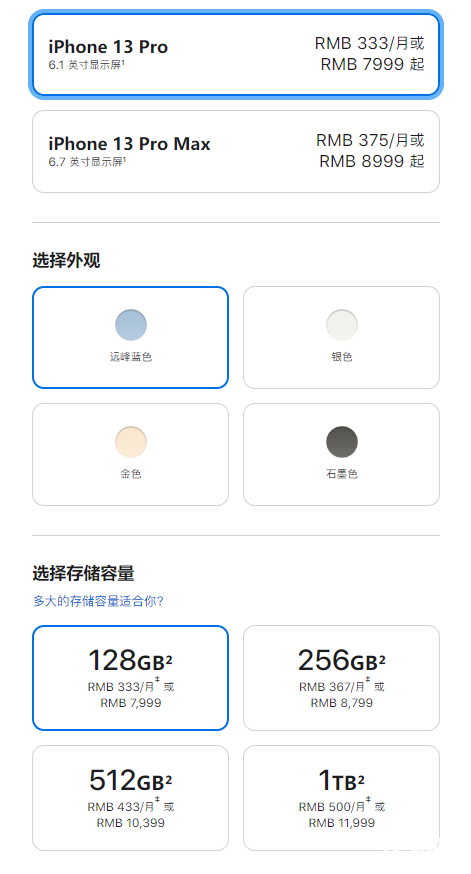 iPhone 13 Pro系列首次增加了1TB容量,顶配价格来到了创纪录的1.3万,128GB/256GB分别降低了500元、300元,512GB的 分别降低了700元、500元。