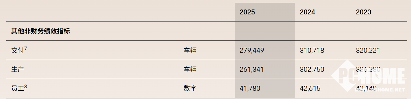 销量方面,2025年保时捷全球交付新车27.94万辆,同比下降10.1%;中国市场交付41938辆,同比大跌26%;北美市场交付8.8万辆,同比下滑7%。