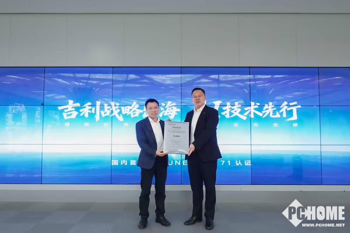 PChome 3月13日消息,吉利汽车集团宣布,旗下智能辅助驾驶系统千里浩瀚G-ASD正式获颁联合国欧盟UN R171国际认证证书,成为中国首个成功出海的高阶辅助驾驶系统。