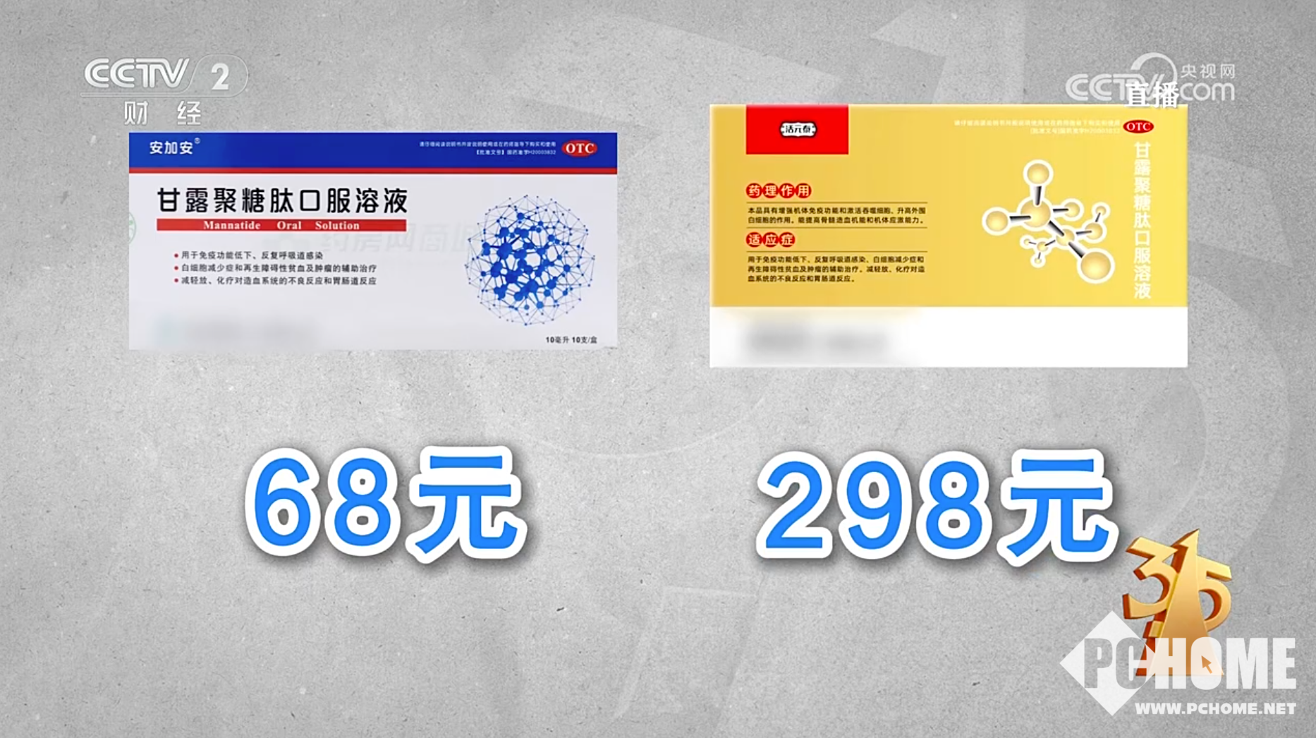 以甘露聚糖肽口服溶液为例,该产品的市场价仅为68元,主要用于免疫功能低下、反复呼吸道感染等疾病。然而,该产品被夸大功效后,售价涨至298元,达市场价近5倍。