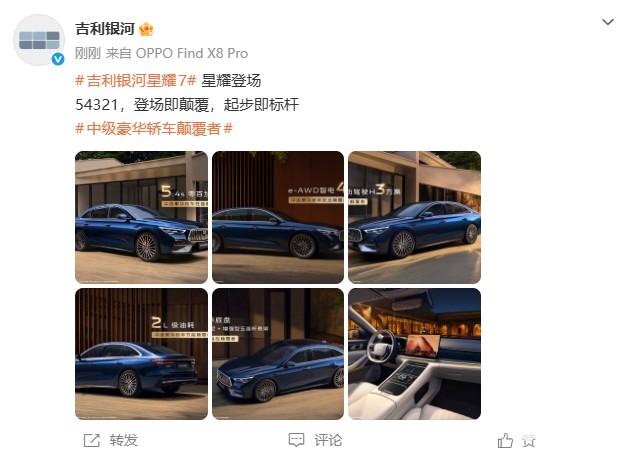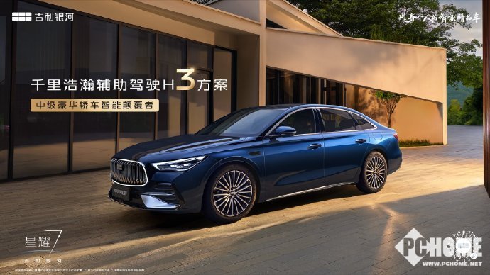 PChome 3月17日消息,吉利银河于今日正式发布了旗下全新车型——银河星耀7的官方图片,定位中型豪华轿车,宣称“登场即颠覆,起步即标杆”,进一步完善银河家族产品矩阵。