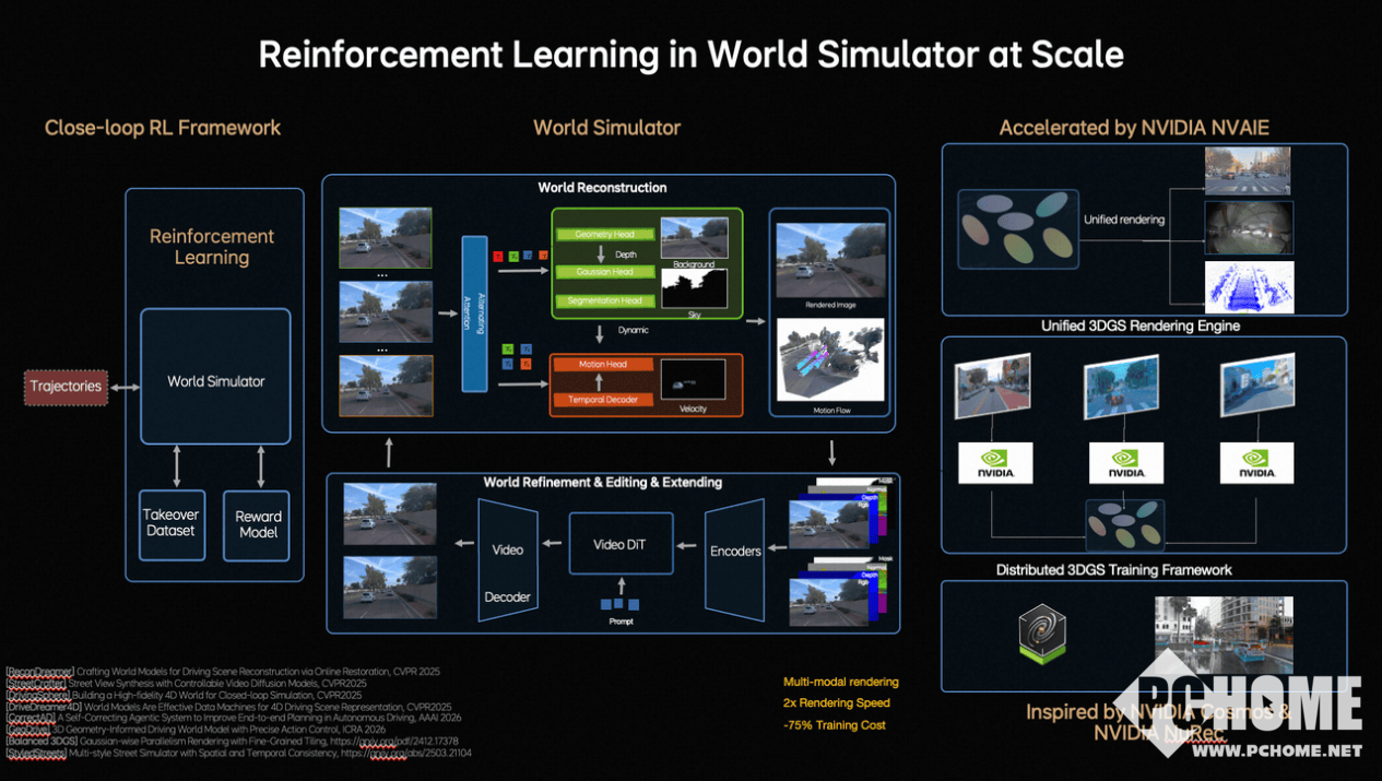 PChome 3月17日消息,今日,理想汽车基座模型负责人詹锟在NVIDIA GTC 2026大会上发布了下一代自动驾驶基础模型MindVLA-o1,以“看得更准、想得更深、行得更稳、进化更快、部署更高效”为核心,重构视觉-语言-行为(VLA)融合架构。