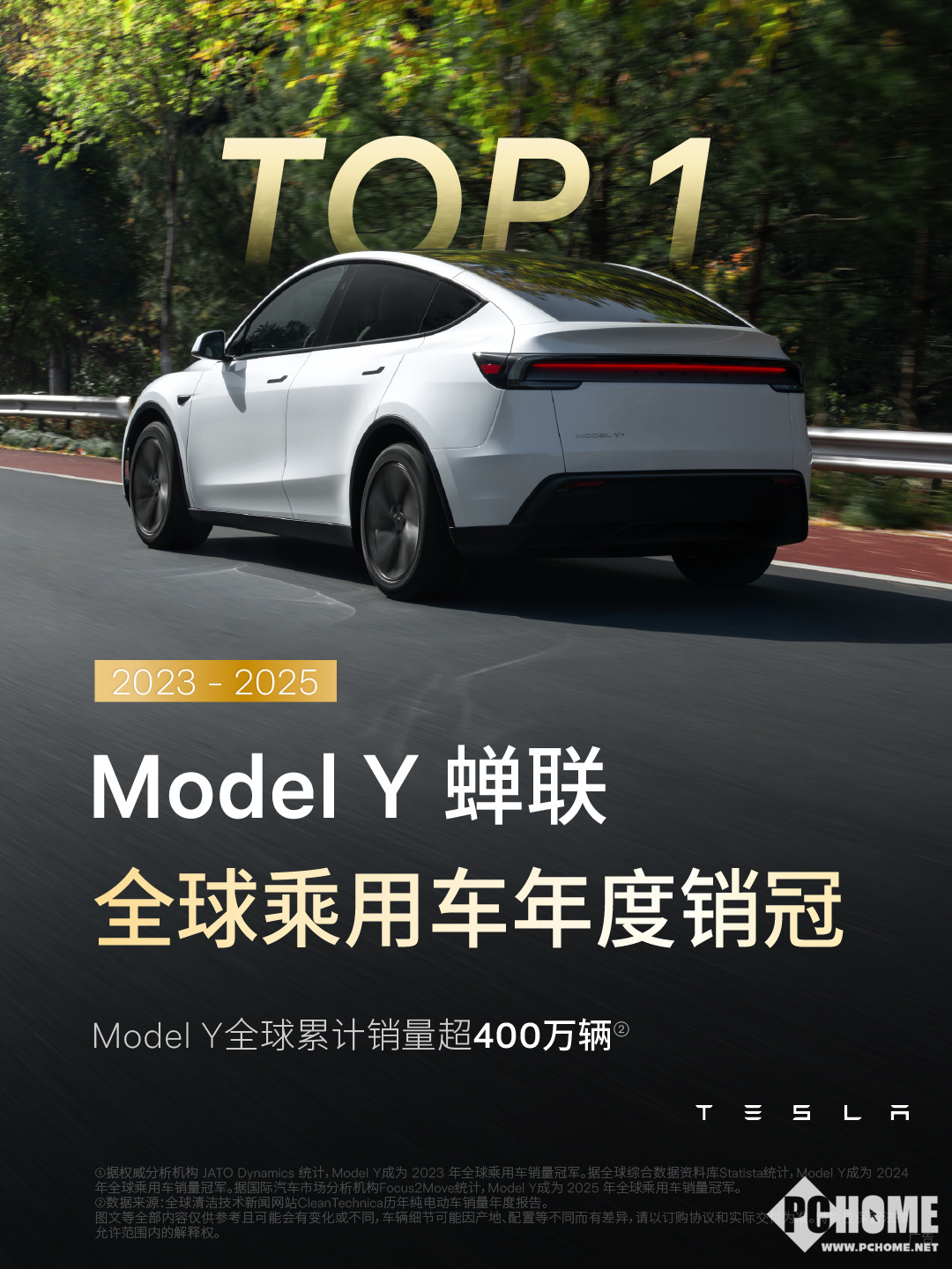 PChome 3月18日,特斯拉官宣,Model Y再次成为全球最畅销车型。据悉,2023年-2025年,Model Y的年销量超过所有燃油/纯电/混动乘用车型。截至目前,Model Y的全球累计销量超400万辆。