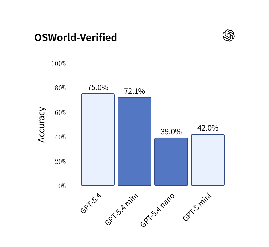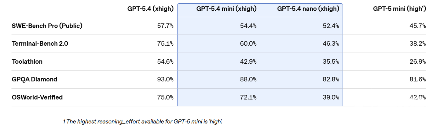 PChome获悉,GPT-5.4 mini:在编程、计算机操作等关键基准测试中接近旗舰版表现。其多模态理解能力可快速解析复杂界面截图,辅助完成实时计算机操作任务;GPT-5.4 nano:专注轻量级任务,是OpenAI迄今最小且成本最低的模型。