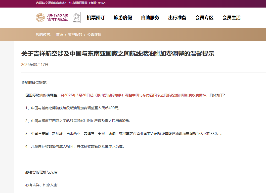 PChome 3月18日消息,近期,受中东地缘局势紧张加剧影响,全球经济不确定性增加,导致油价大幅波动,全球多家航空公司密集上调票价与燃油附加费,全球机票进入涨价周期,国际与跨境航线出行成本显著增加。
