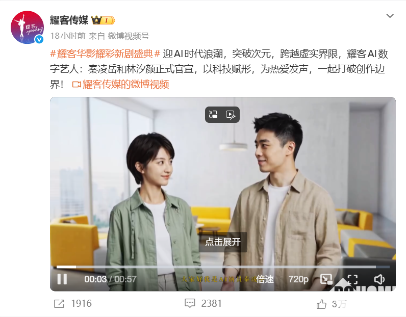 PChome 3月19日消息,耀客传媒近期高调签约两名AI演员,并为其开通实名制社交媒体账号,成为国内首次将AI艺人纳入经纪体系的操作,引发全网对“AI取代真人演员”的激烈争议。
