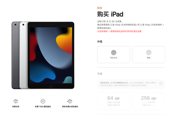 昨日凌晨的苹果秋季新品发布会上,首个亮相的便是最新一代的iPad 9。今日上午9点,iPad 9已经开启预定,并与9月24日正式开售,起售价2499元。iPad 9正面依然搭载一块非全贴合的屏幕,后置单摄,因为整体升级十分有限,iPad 9也被视为今年最没诚意的产品。