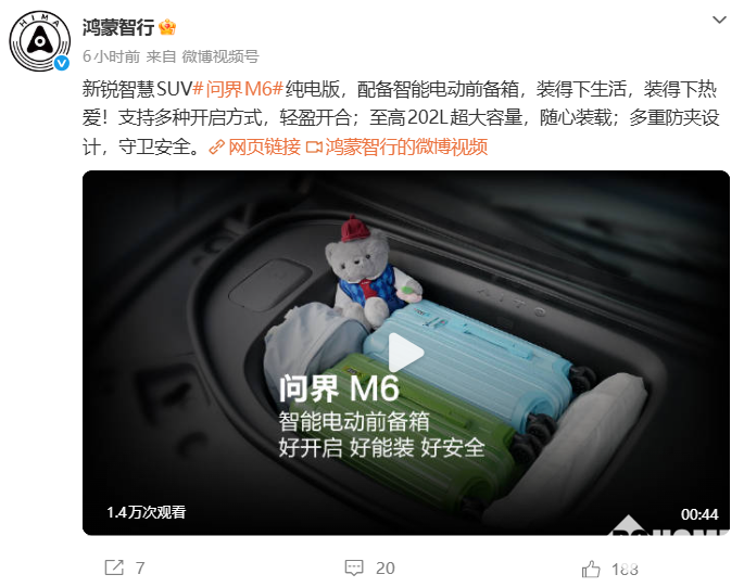 PChome 3月19日消息,鸿蒙智行官方今日发布视频,首次介绍了旗下问界M6纯电版前备箱的操作方式。