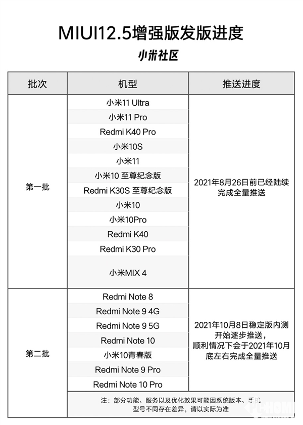 官方表示,顺利情况上述机型会于2021年10月底左右完成全量推送。
