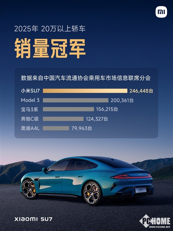 PChome获悉,这一成绩的背后,是小米5年来在汽车领域400多亿元的研发投入,以及全球用户的信任与支持。据悉,第一代小米SU7自2024年3月上市以来,销量持续攀升,2025年全年交付量超24.64万辆,首次超越特斯拉Model 3,成为中国市场高端纯电轿车年度销冠,也是唯一超越特斯拉的国产纯电轿车。