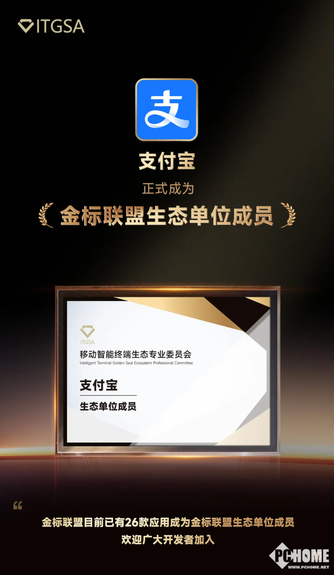 PChome 3月21日消息,支付宝于昨日正式加入移动智能终端生态专业委员会,成为其第26家生态单位成员,标志着支付类头部应用深度参与终端行业标准化建设。