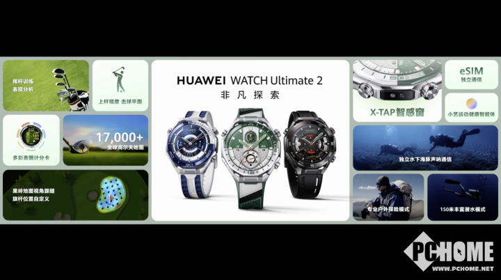 核心功能层面,华为WATCH Ultimate 2是全球首款支持150米专业潜水且具备音频功能的智能手表,搭载业界首创的海豚声呐通信技术,可在水下30米实现手表间消息互传及60米范围内SOS求救信号发送,彻底解决潜水场景下的沟通与安全痛点。通信方面,该产品支持北斗卫星语音消息、eSIM独立通话及星闪车钥匙功能,可与华为智选车无缝联动。