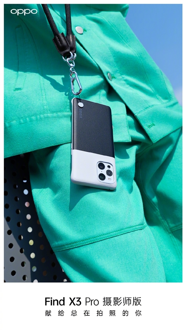 9月16日晚,OPPO Find X3 Pro 摄影师版正式发布。它机身背部采用了拼色处理,保留了经典的“环形山”设计,还在机身上半部分在玻璃背板上实现了金属光泽视觉效果,不但避免了信号屏蔽问题,还减轻了机身重量,而下半部分则是搭配了黑荔枝纹皮革材质,横握在手中时仿佛手持一台复古相机。