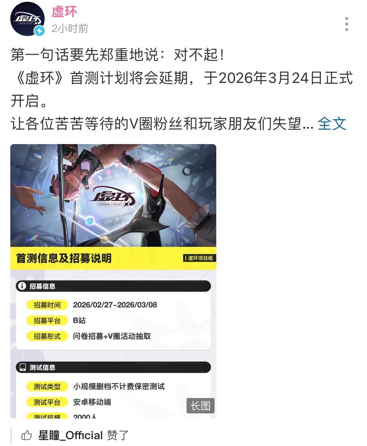 PChome 3月24日消息,腾讯游戏《虚环》的首测已于今日10:00正式开启,这是一款腾讯研发的V圈主题策略养成手游,玩家可在安卓端体验为期7天的限量测试,测试将于3月30日23:59结束。