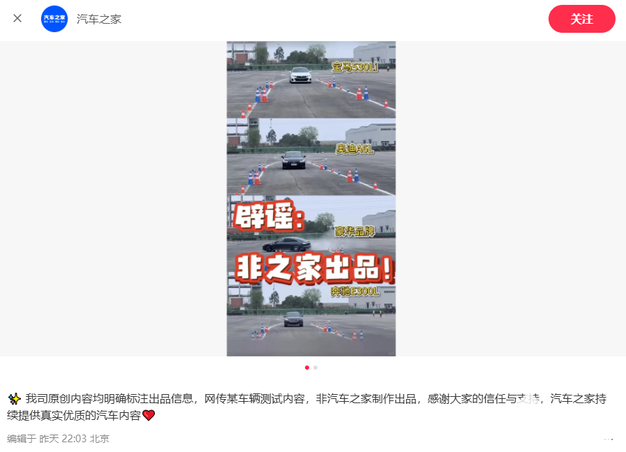 针对此类传言,汽车之家官方于昨日晚间发布辟谣声明,明确表示网传账号封禁与某车辆测试内容毫无关联,该测试内容并非平台官方制作发布,属于恶意嫁接的虚假信息。同时,官方透露,此次多平台账号被禁止关注,系此前平台相关内容运营规范问题引发的处置,与网传车辆测试事件无任何因果关系。