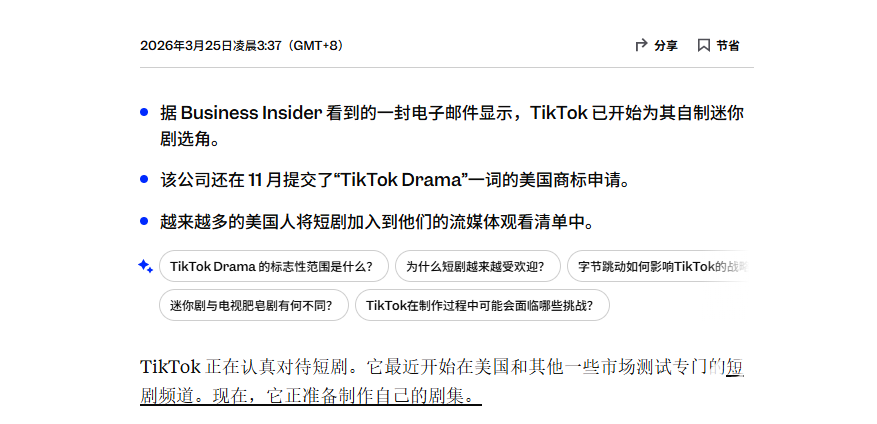 目前,TikTok尚未对自制短剧计划作出官方回应。