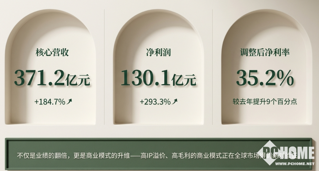 据了解,泡泡玛特已公布2025年财报,2025年全年,集团实现收入371.2亿元,同比暴增184.7%;净利润达130.1亿元,同比增长293.3%。毛利率从2024年的66.8%提升至72.1%,毛利规模从87亿元扩张至268亿元。