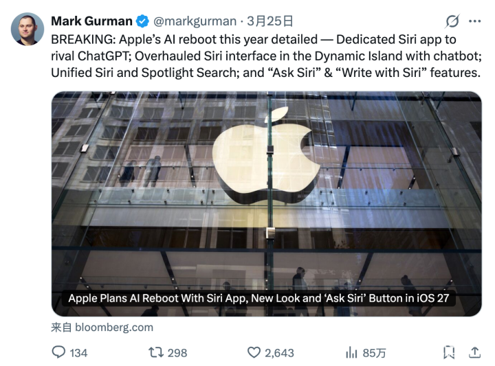 值得关注的是,2026年恰逢苹果公司成立50周年,这一战略动作被行业广泛解读为苹果在AI赛道的关键反击。当前,全球科技巨头纷纷加码生成式AI,语音助手成为AI落地的核心入口,而Siri此前在连续对话、场景适配等方面的表现已落后于同类产品。