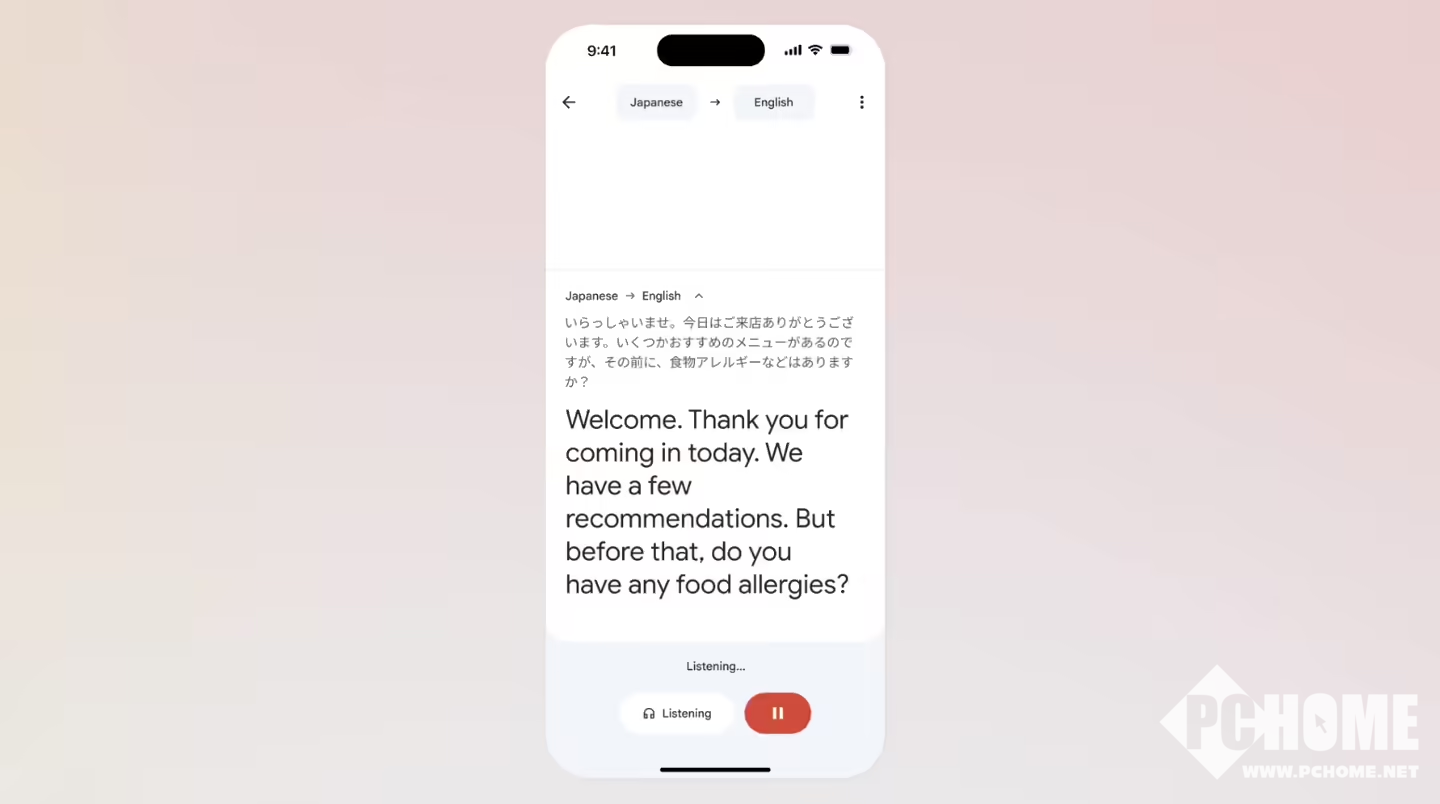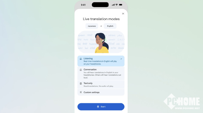 PChome 3月27日消息,谷歌宣布旗下“谷歌翻译(Google Translate)”的“耳机实时翻译(Live translate with headphones)”功能已正式登陆iOS平台。允许iPhone用户在佩戴耳机时实现跨70多种语言的实时对话翻译。
