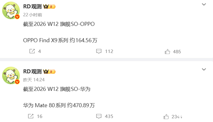 同期,华为Mate 80系列出货470.89万台,位居国产阵营前列;OPPO、vivo旗舰系列均不足200万台。