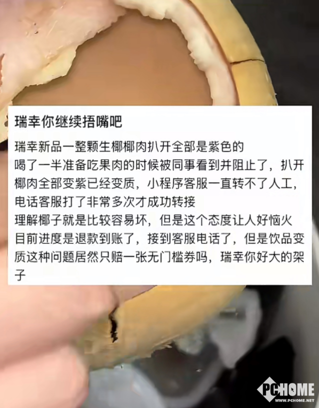PChome 3月31日消息,近日,瑞幸咖啡为庆祝生椰拿铁上市五周年推出的限量新品“一整颗生椰”,因椰肉变紫问题引发广泛争议。