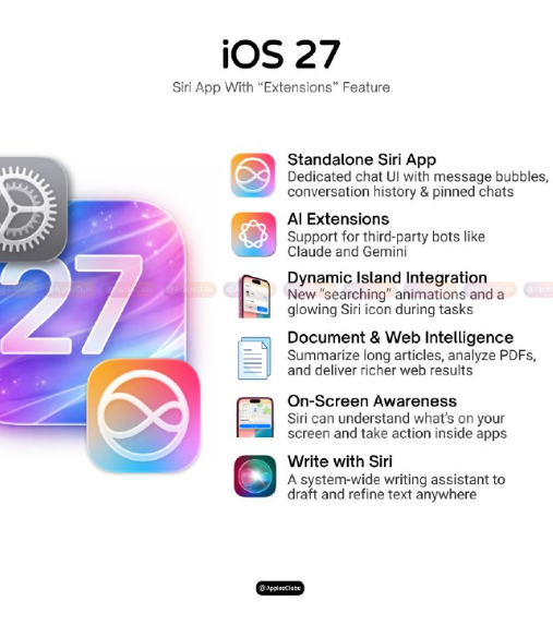 “快捷指令”应用将在iOS 27中进行重大AI升级,用户将可通过自然语言语音指令,借助Apple Intelligence模型自动生成自定义操作,无需手动设置复杂流程。这一功能大幅降低使用门槛,有望使快捷指令从极客工具转变为大众生产力工具。此前,iOS 26系统仅支持在快捷指令里调用AI处理内容(如摘要、生成文本),仍需手动搭建流程Apple Support;iOS 27系统升级,可AI直接生成完整指令—— 你说需求,AI自动解析、组合操作、生成可用流程。