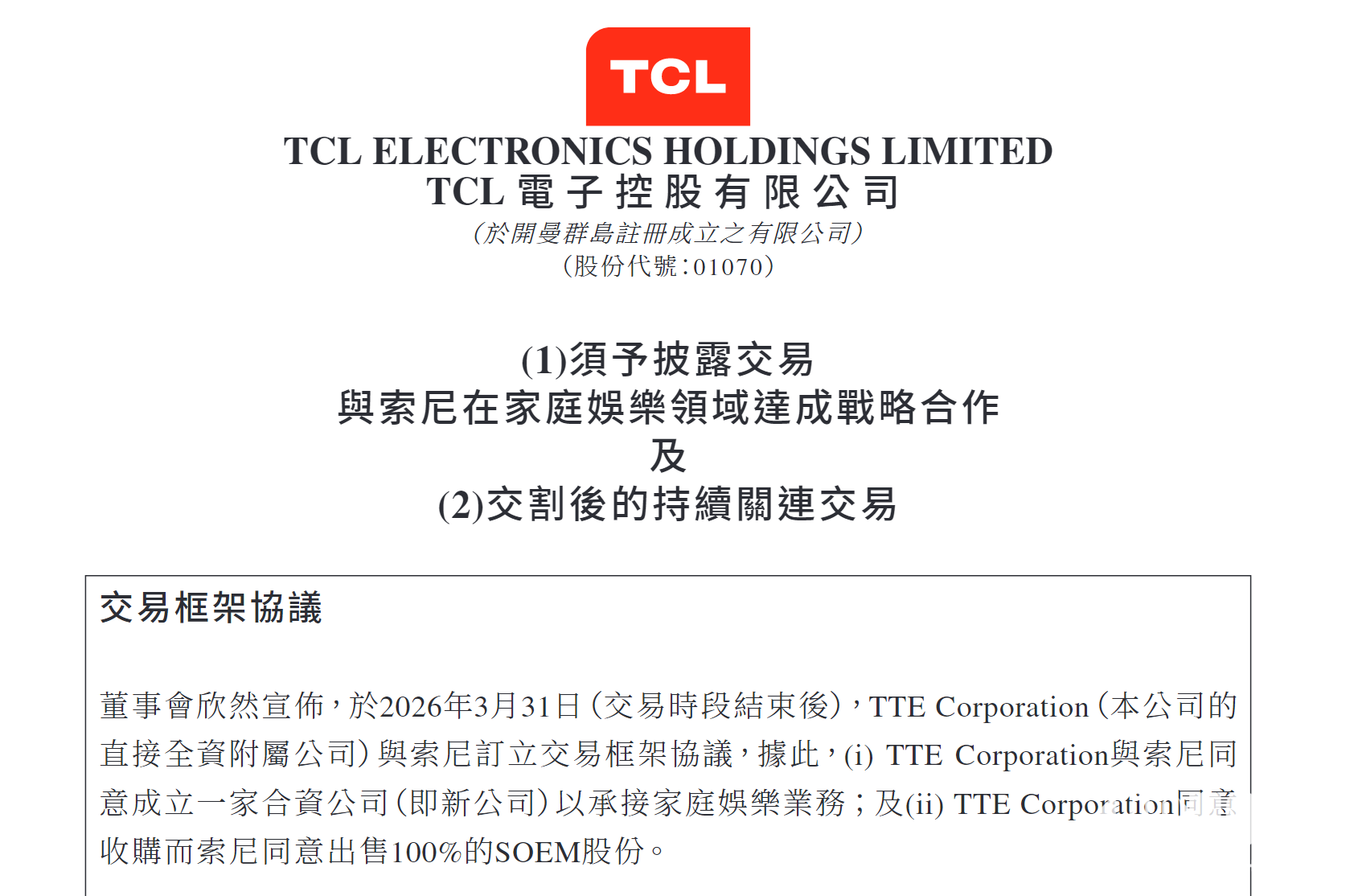 此次合作标志着索尼将其电视与家庭娱乐硬件业务深度整合至TCL的供应链体系,同时保留核心技术与品牌控制力,而TCL则借此跃升为全球高端电视市场主导力量之一,推动中国企业在国际消费电子领域的话语权提升。