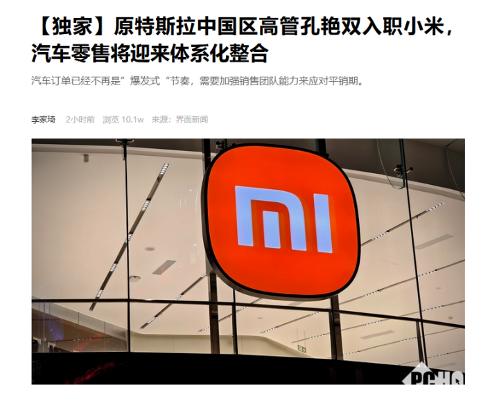 PChome 4月1日消息,据《界面新闻》今日报道,原特斯拉中国区总经理孔艳双已于3月初正式入职小米,将接替原小米汽车总监李晓锐,全面负责汽车销售相关工作,目前正处于工作交接阶段。