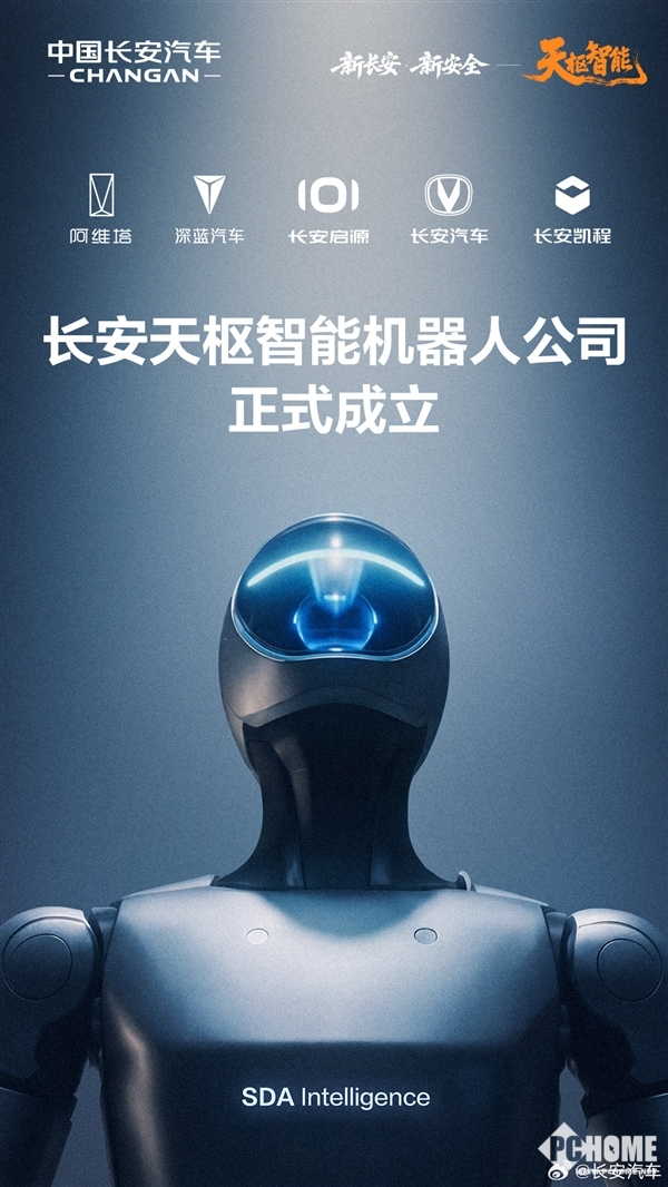 PChome 4月1日消息,长安汽车集团官宣,长安天枢智能机器人科技有限公司正式成立,标志着这家汽车央企全面进军具身智能领域。